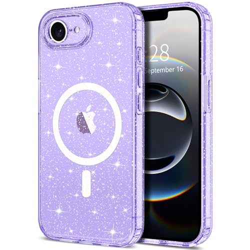 Hython for iPhone 16e Case Glitter, Clear Glitter Sparkly Shiny Bling Sparkle Cute Cover, Anti-Scratch Soft TPU Thin Slim Fit Shockproof Protective Phone Cases for Women Girls, Magnetic Purple