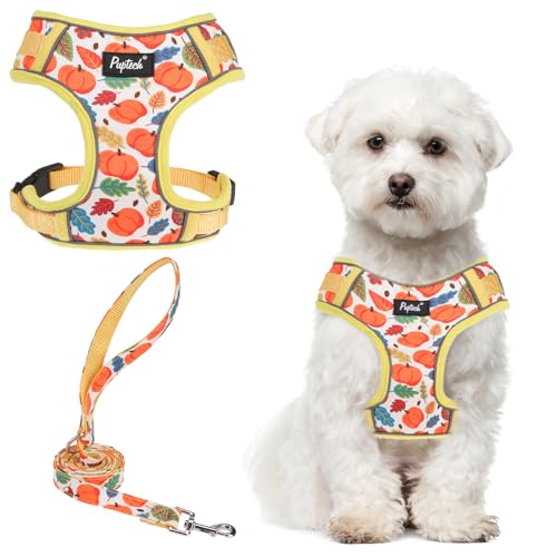 PUPTECK Thanksgiving Fall Small Dog Harness and Leash Set, No Pull Adjustable Puppy Cat Harness, Reflective Soft Mesh Pet Vest Small Sized