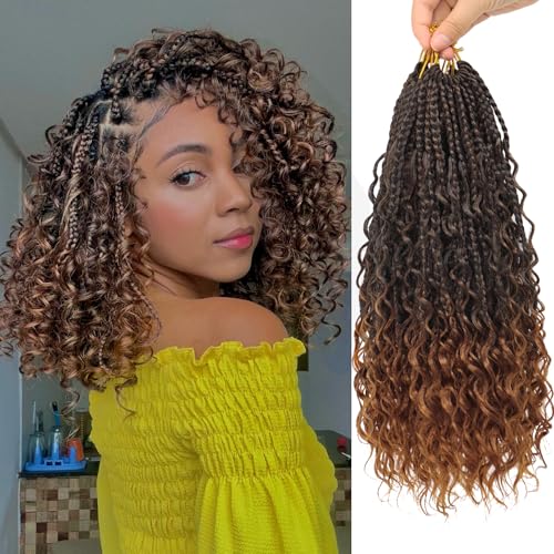 Eeanno Goddess Box Braids Crochet Hair 14 Inch 7 Packs Black Brown Pre Looped Boho Crochet Braids with Curly Ends for Black Women
