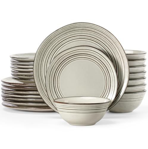 Famiware Plates and Bowls Sets 24-Piece Stoneware Dinnerware Sets, Dishes Set for 8, Hand-made Reactive Glaze Dish Set, Twilight Series, Terre-verte