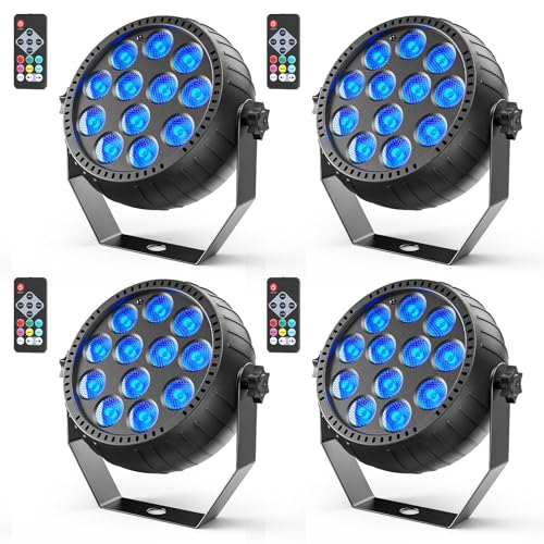 Rechargeable Stage Lights, 2200mAh Battery Powered LED Par Lights with Remote & Sound Activated, 12 RGB Portable Uplights for Events Wedding Party Club Concert Indoor 4Packs