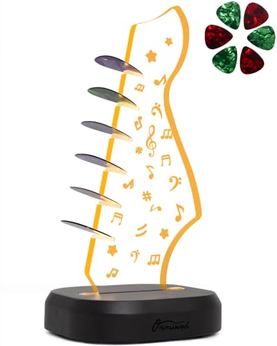 Light Up Guitar Pick Holder with 6 Guitar Picks, Real Hardwood & Acrylic Music Note Pick Holder Case for Picks Storage & Display, Guitar Music Accessories Gift for Guitar Player Music Lover