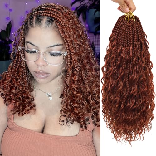 Eeanno Goddess Box Braids Crochet Hair Honey Blonde Boho Hair for Women Pre Looped Crochet Box Braids with Curly Ends (Reddish Brown, 14 Inch (Pack of 7))