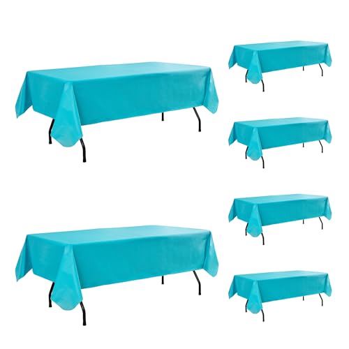 Enjoyidea Vinyl Tablecloth with Flannel Backing-6 Pack Teal 60x84 Inch Waterproof PEVA Table Cloth Outdoor Plastic Table Sheets-Wipeable Spillproof Oilcloth Covers for Picnic Party Camping Dining