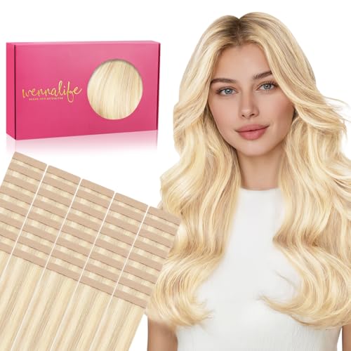 WENNALIFE Tape in Hair Extensions Human Hair, 40pcs 100g 24 inch Balayage Light Wheat Platinum Blonde Hair Extensions Real Human Hair Straight Tape in Extensions Invisible Human Hair Extensions Reusab