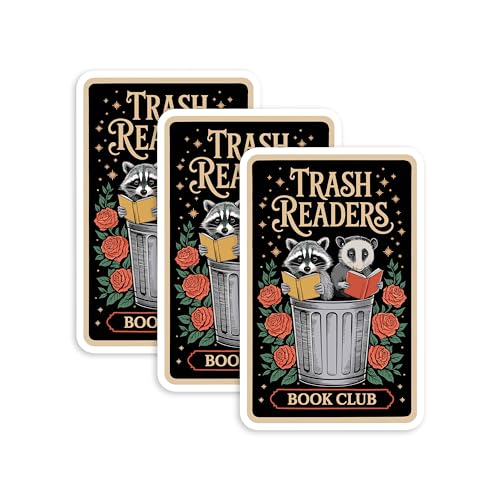 Set 3Pcs Trash Readers Book Club Sticker Funny Raccoon Opossum Bookish Kindle Meme Humor Sticker Waterproof 3 Inches Die-Cut Vinyl for Water Bottle Laptop Phone for Friend Coworker Dad Mom