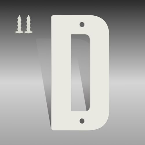10 Inch White Metal Letters, Modern House Numbers for Outside, White Door Mailbox Numbers, Metal House Address Letter and Number for Office Apartment Outside (D)