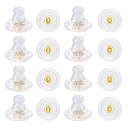 Earring Back for Droopy Ears 18K Gold Silicone Earring Backs Suitable for Studs and Heavy Earrings Clear Hypoallergenice Replacements Earring Back(8 Pairs)
