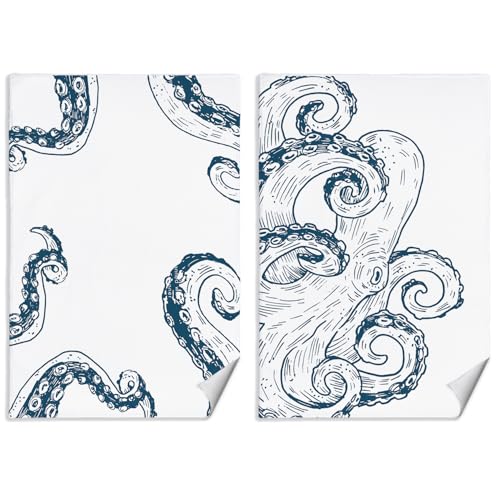 Jvpke Coastal Beach Kitchen Towels Set of 2, Octopus Decor Hand Towels for Bathroom, Octopus Gifts Dish Tea Towels for Kitchen Decor, Ocean Octopus Bathroom Decor, 16x24 Inch