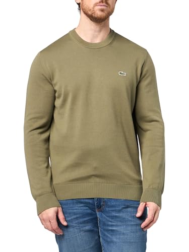 Lacoste Men's Monochrome Crew Neck Cotton Sweater, Olive, 3X-Large