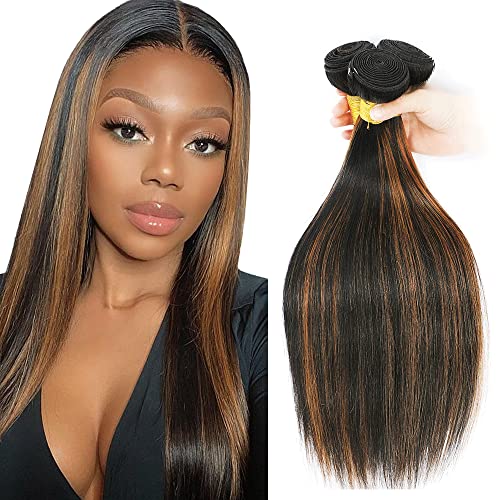 34 34 34 Vinmdonm P1B/30 Highlight Bundles Human Hair Ombre Brown Body Wave 3 Bundles Double Weft 2 Tone Black and Dark Brown Bundle