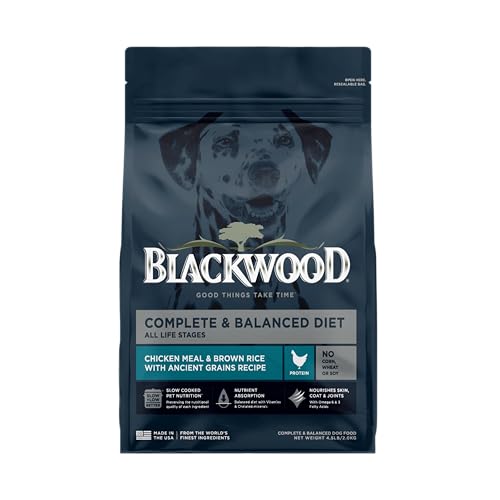 Blackwood Complete & Balanced Diet Dry Dog Food, Chicken Meal & Brown Rice with Ancient Grains, 4.5 Pound Bag, Slow Cooked with Vitamins & Minerals
