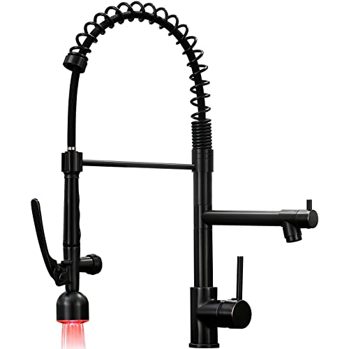 Fapully Commercial Single Handle Pull Down Sprayer Oil Rubbed Bronze Kitchen Faucet, Kitchen Sink Faucet with LED Light