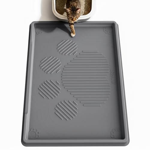ISSEVE Cat Litter Mat 1.38" High Raised Edge, Extra Large 40" x 28" XL Silicone Mat for Litter Box, Urine Proof Litter Trapping Mat for Scatter Control, Soft on Kitty Paws, Protect Floor (Dark Grey)
