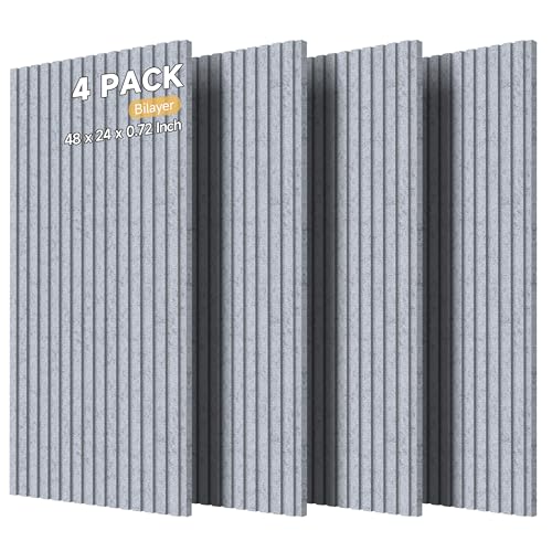 Large Bilayer Acoustic Panels,4 Pack Sound Absorbing Panels,48” x 24” x 0.72” Sound Proof Panels for Walls,Decorative Sound Panels,High-Density Acoustic Wall Panels,Silver Grey