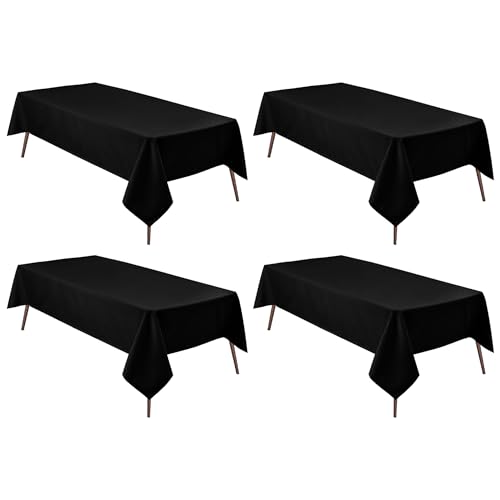 Hiasan 4 Pack Black Tablecloth Rectangle - Waterproof and Wrinklr Resistant Washable Polyester Fabric Table Cloth for Dining Room and Outdoor Use, 54 x 80 Inch