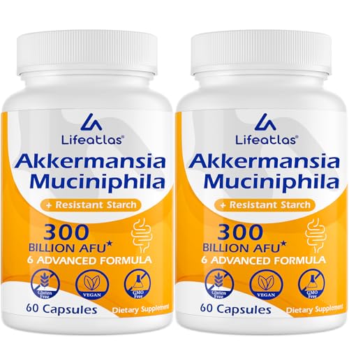 Lifeatlas Akkermansia Supplement Probiotic | Akkermansia with 300 Billion AFU Akkermansia Probiotic, 6-in-1 Akkermansia Probiotics for Women and Men, Daily Akkermansia Supplement, 120 Caps