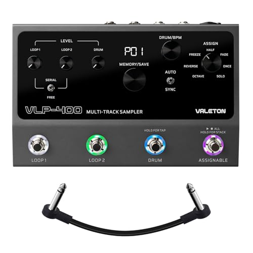 VALETON Guitar Loop Station Looper Pedal with 100-Stereo Drum Machine, 7 Customizable Effects, Assignable Knobs & Footswitches, USB Connectivity for Windows/Mac VLP-400 (Incl 1 PCS 15 CM TS Cable)