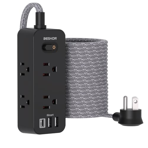 Extension Cord 20FT, BESHON Power Strip Surge Protector, 6 Outlets with 3 USB Ports(1 USB C Outlet), 3-Side Outlet Extender, Wall Mount, Compact for Travel, Home, College Dorm Room, and Office, Black
