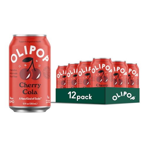 OLIPOP Prebiotic Soda Pop, Cherry Cola, Pantry Pack Packed with Prebiotics, Fiber, and Botanicals, Gluten Free, Vegan, GMO Free, 12oz (12-Cans)