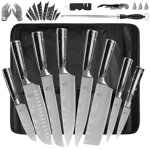 SANDEWILY 5PCS Chef Knife Set - Ultra Sharp Japanese Knives with High Carbon Stainless Steel Blades and Ergonomic Pakkawood Handle in an Elegant Gift Box