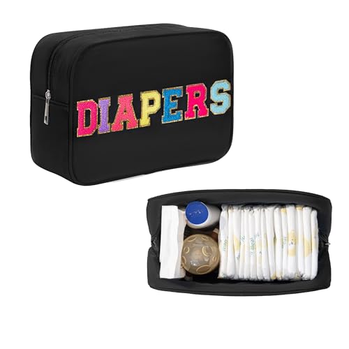 Chenille Letter Insulated Diaper Caddy Bag, Small Diaper Bag Organizer Pouch for Nursery Changing Table, New Born Baby Essential Storage Bag Diaper Pail Baby Shower Gifts for Mom To Be (Black)