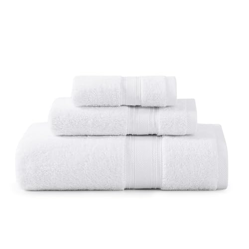 LANE LINEN Luxury Bath Towels Set - 3 Piece 100% Cotton Bathroom Towels, Quick Dry, Extra Aborbent, Super Soft Towels Set 1 Hand Towel, 1 Wash Cloths, 1 Bath Towel, White