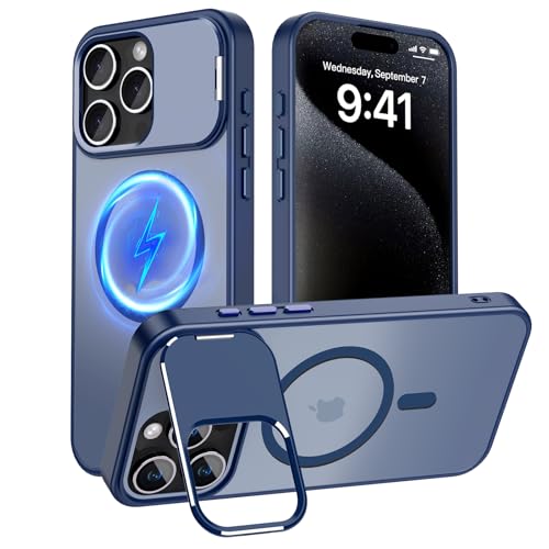 Innaght Magnetic for iPhone 15 Pro Max Case with Stand,Compatible with MagSafe,Rugged,Heavy Duty,Protective case Kickstand,[Built-in Invisible Stand],Blue