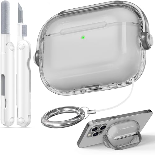 Wowwat for Airpods Pro 3 Case,Safety Lock Cases for Apple Airpod Pro 3 (2025) with Phone Stand & Cleaner Kit,Drop Protection Air pods Pro3 Case Cover for Men Women with Keychain,Clear Black