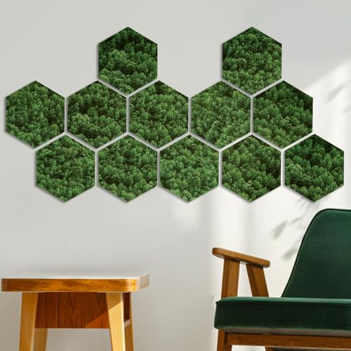 12 Pack Acoustic Panels, 12" x 10" x 0.4" Hexagon Soundproof Wall Panels, High Density Sound Absorbing Panel, Flame Resistant, Sound Dampening Panels for Recording Studio, Home, Office - Forest