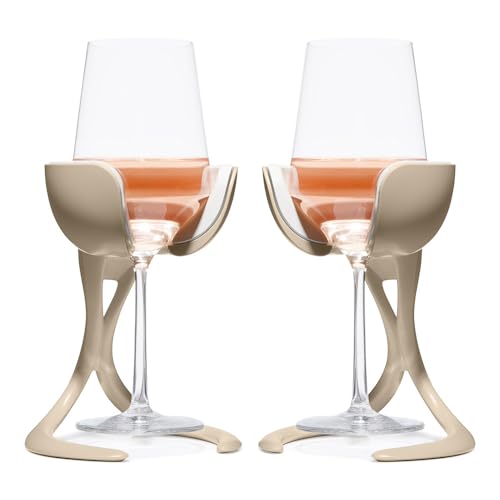 VoChill Stemmed Wine Glass Chiller | Made in USA | Radically cool wine tool – keeps wine perfectly chilled in your glass | Refreezable Chill Cradle actively chills (Sand, Perfect Pair)