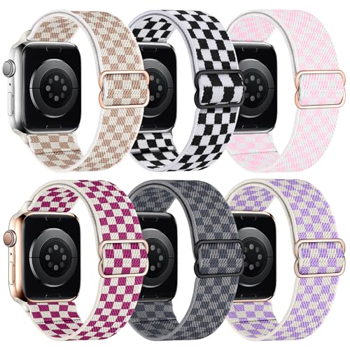 MITERV 6 Pack Stretchy Solo Loop Compatible with Apple Watch Band 38mm 40mm 41mm 42mm 44mm 45mm 49mm Women Men,Soft Nylon Elastic Braided Strap Wristband for iWatch Series Ultra 9 8 7 6 5 4 3 2 1 SE