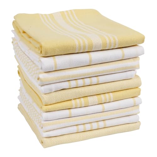 KAF Home Soho Kitchen Dish Towel Set of 10 | 18 x 28 Inch Tea Towels | Soft and Absorbent Mixed Set of Flat Towels | for Hand Drying & Cleaning Dishes | Durable & Colorful (Yellow)