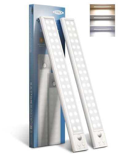 AMETHEUS Under Cabinet Lights, Motion Sensor Light Indoor, Wireless Closet Lights, 2200mAh Rechargeable, Magnetic, 3 Color Temps, 5 Levels Dimmable, Under Counter Lights for Kitchen (2 Pack)