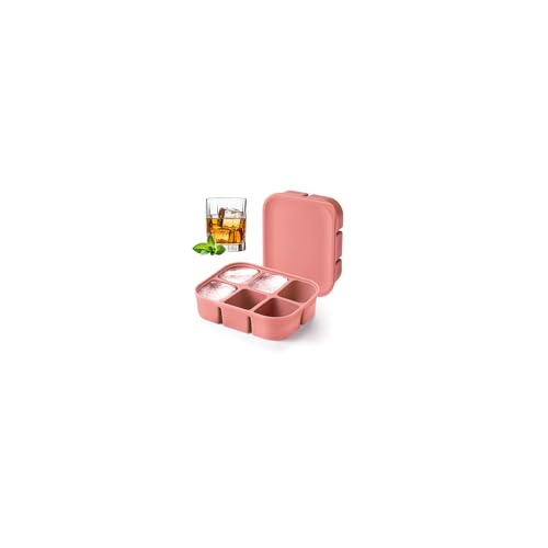 Nbyouw Ice Cube Tray 2 Pack - Stackable Large Silicone Ice Cube Freezer Molds & Easy Release Square Ice Cube Maker with Removable Lid BPA Free for Cocktail,Whiskey,Soup Baby Food