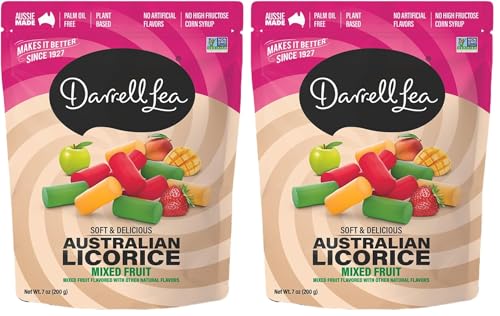 Darrell Lea Soft Australian Licorice, Non-GMO, No Palm Oil, Plant Based, No High Fructose Corn Syrup, Soft & Chewy Licorice Candy, Made in Australia (Mixed Fruit, 7 Ounce (Pack of 2)) *ASIN