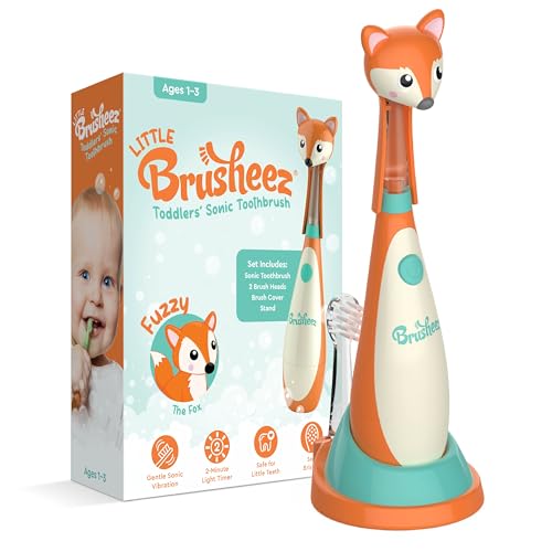 Brusheez Little Toddlers’ Sonic Toothbrush - Safe & Gentle Toothbrush for Ages 1-3 with Built-in, Light-Up 2-Minute Timer, Extra Brush Head, & Storage Base for First-Time Brushers (Fuzzy The Fox)