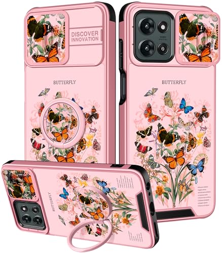 Funermei for Moto G 5G 2025 Case - Women Girls Cute Phone Cover Girly Pretty Aesthetic Butterfly and Flower Unique Design with Camera Cover and Ring Stand Funda for Motorola G 5G 2025