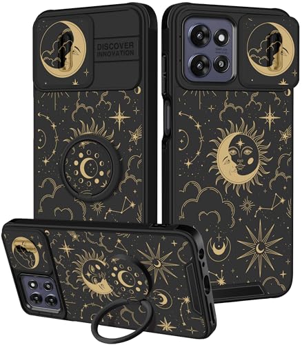 Funermei for Moto G Power 5G 2025, for Moto G Play 2025 Case - Women Girls Cute Phone Cover Girly Pretty Sun Moon with Camera Cover and Ring Stand Funda for Motorola G Power 5G 2025/G Paly 2025