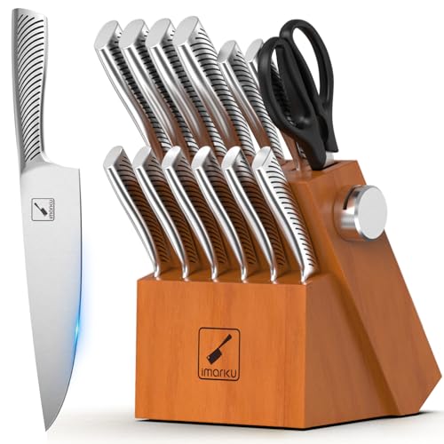 imarku Knife Set, 14 Piece Premium Kitchen Knife Block Set, Razor Sharp Japanese Chef Knives Set for Kitchen with Built-in Sharpener, Dishwasher Safe and Quality Acacia Wood Block