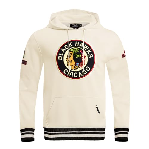 Pro Standard Mens NHL Chicago Blackhawks Retro Classics Pull Over Hoodie Eggshell/Black 2Xl