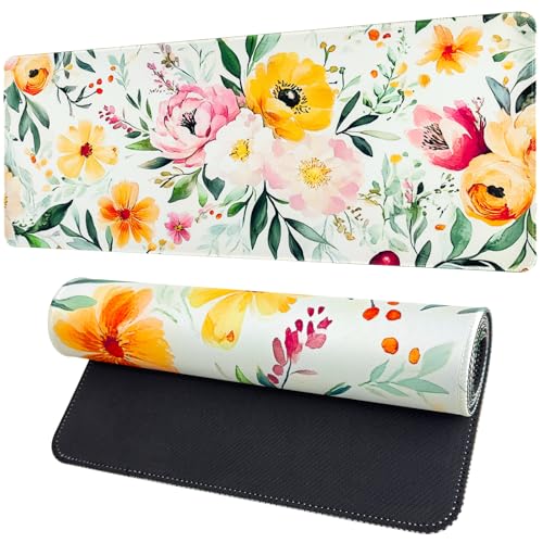 Vanzard Floral Desk Mat,Cute Large Mouse Pad for Desk, Flower Computer Mousepad with Non-Slip Rubber Base,Girly Keyboard Mouse Pad for Work, Game, Office, Home,31.5 x 11.8 Inch