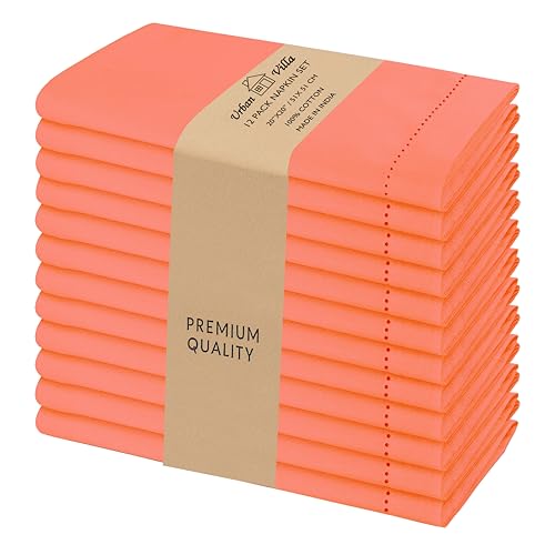 Urban Villa Fall Cloth Napkins Hemstitch Dinner Napkins Orange Color 20''x20'' (Set of 12) 100% Cotton Absorbent Napkins Soft Durable Reusable Washable Ideal for Events Parties Everyday use