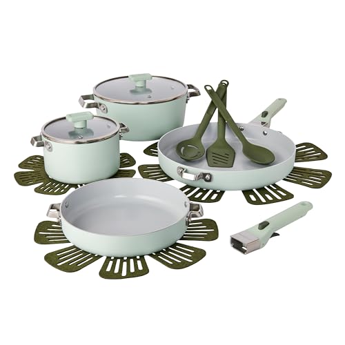GoodCook Ceramic Cookware Set 14-Piece with Removable Handles, Nonstick Pots & Pans, Induction & Oven Safe, Sage Green