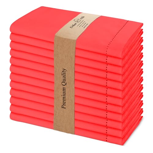 Urban Villa Cloth Napkin Set of 12 Hemstitch Solid Red 20x20 Inches Premium Soft Cotton Highly Absorbent Reusable & Washable Dinner Table Napkins for Home and Weddings