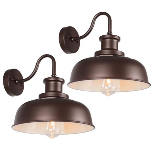 Diyel Solar Barn Lights for Outside, Outdoor Wall Light Solar Powered, Farmhouse Exterior Wall Sconce, Industrial Outside Lighting Fixture, Rustic Bronze White Lanterns for Barn Shed Coop Garage Patio