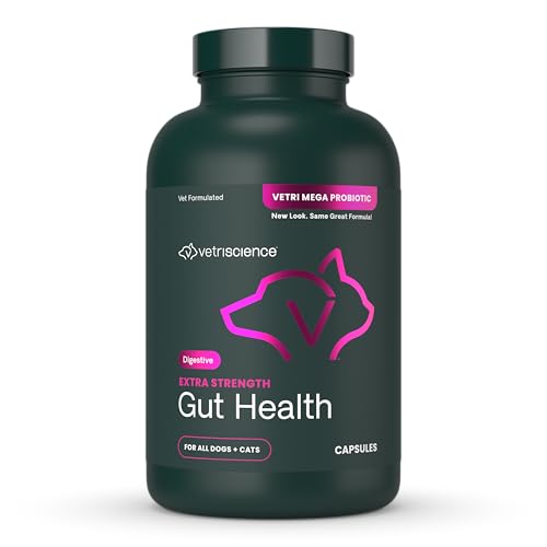 VetriScience Extra Strength Gut Health Probiotic & Prebiotic Digestive Supplements for Dogs & Cats, Gas & Diarrhea & Immune Support, Easy-Open Capsules, 180 Count - New Look