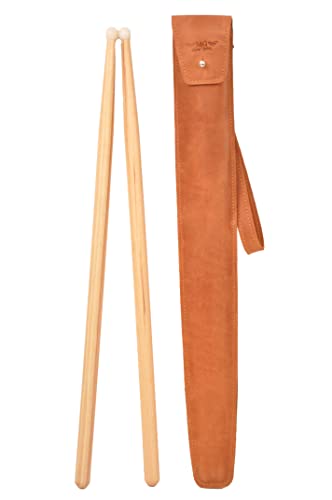 Genuine leather drumstick pouch with a button stud closure, gift for drummer, leather drum stick holder for musician (Pouch, Light Brown)