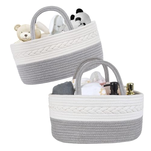 QFLQFL Baby Diaper Caddy Girl Boy Organizer Small Woven Baskets With Handle, Cotton Rope Tote For Shower Nursery, Decorative Small Storage Baskets For Shelves,Unique Gift Baby
