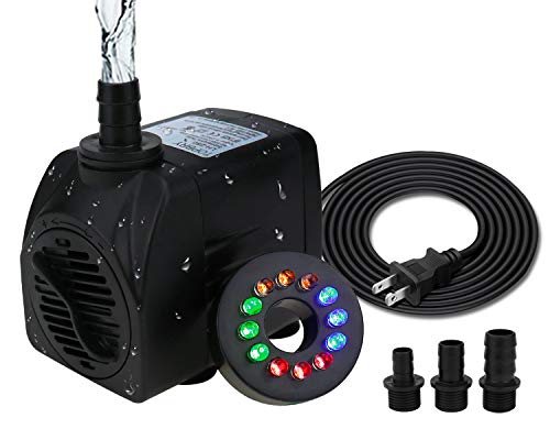 TOPBRY 800 GPH Submersible Fountain Pump (3000L/H, 45W), Ultra Quiet 12 LED Colorful Pump Lights with 3 Nozzles, 6 Feet Power Cord for Fish Tank, Pond, Aquarium, Statuary, Hydroponics